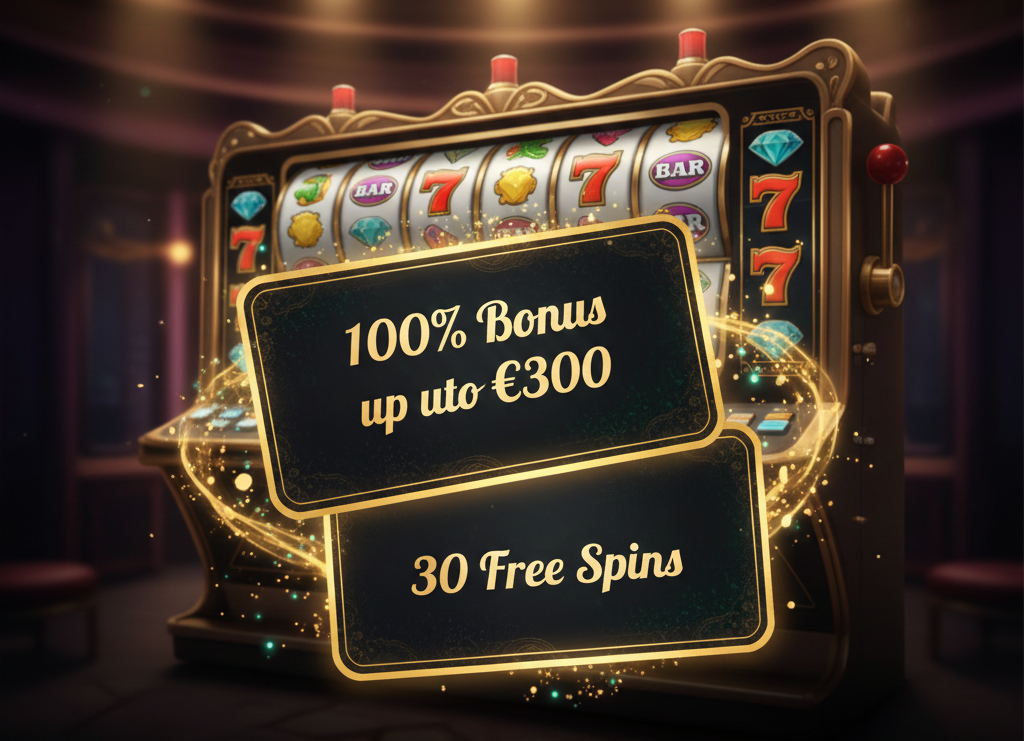 Four deposits: 100% to €300 + 30 spins first, scaling up. 35x wager.