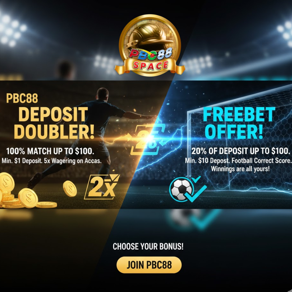 Newly registered sports bettors may select one of two incentives from PBC88: a doubling of the first deposit up to $100 or a freebet equivalent to 20% of the deposit, capped similarly. The deposit bonus requires a minimum of $1 and a fivefold wagering on accumulators. The freebet necessitates a $10 deposit and applies solely to exact football score predictions; it represents a single-risk opportunity, with immediate withdrawal of winnings upon success.